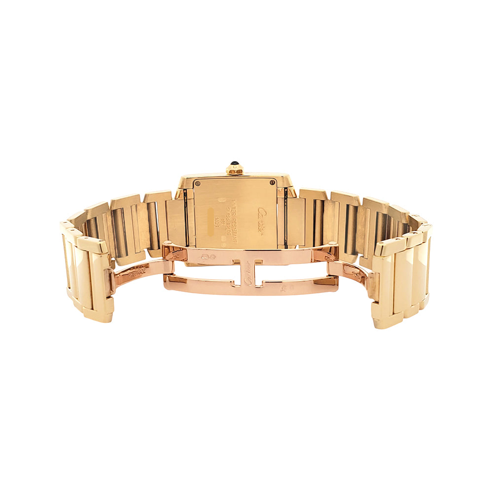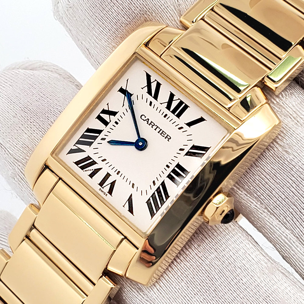 Timeless elegance meets refined luxury with this Cartier Tank Française Midsize 25mm, showcasing a yellow gold case and classic Roman dial.