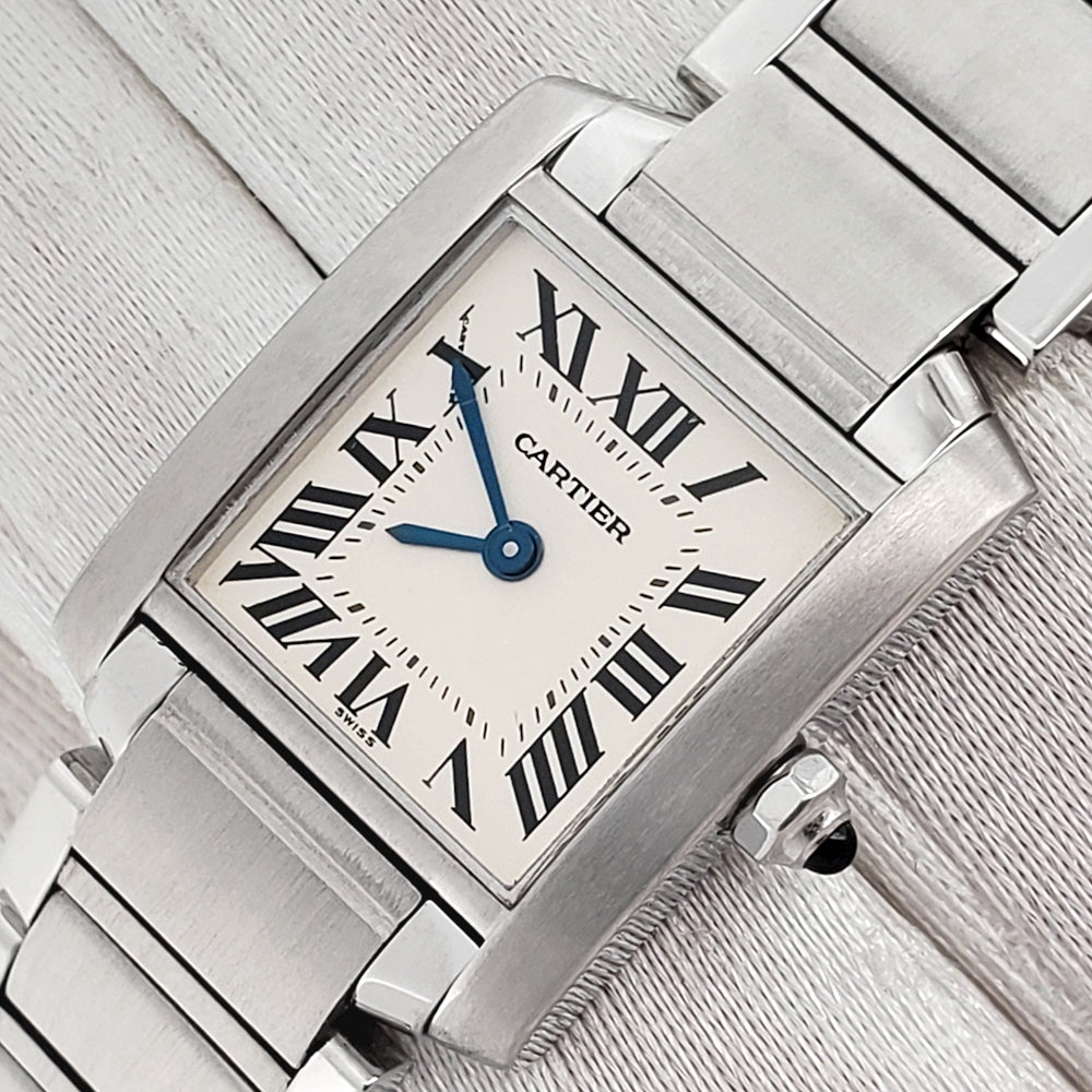 Cartier Tank Francaise Small 20mm White Roman Steel Quartz Watch 2384 W51007Q3