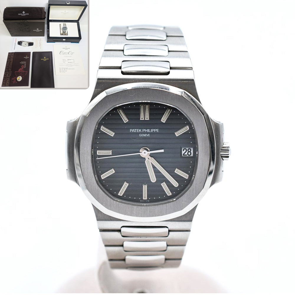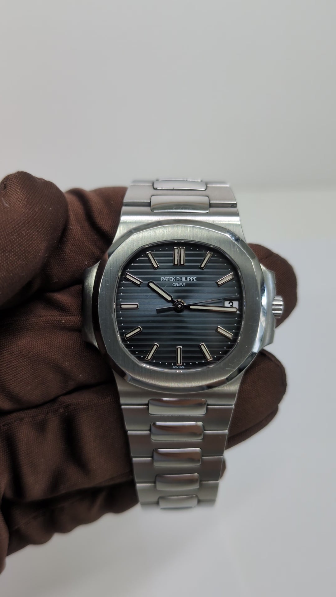 Timeless rarity Patek Philippe Nautilus 5800/1A-001 in 38mm stainless steel with blue dial. Complete with box and papers.
