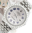 Rolex Datejust 36mm 3.9CT Diamond Bezel/Lugs/Silver Decorated Blue Arabic Dial Steel Watch, Ref 116200.