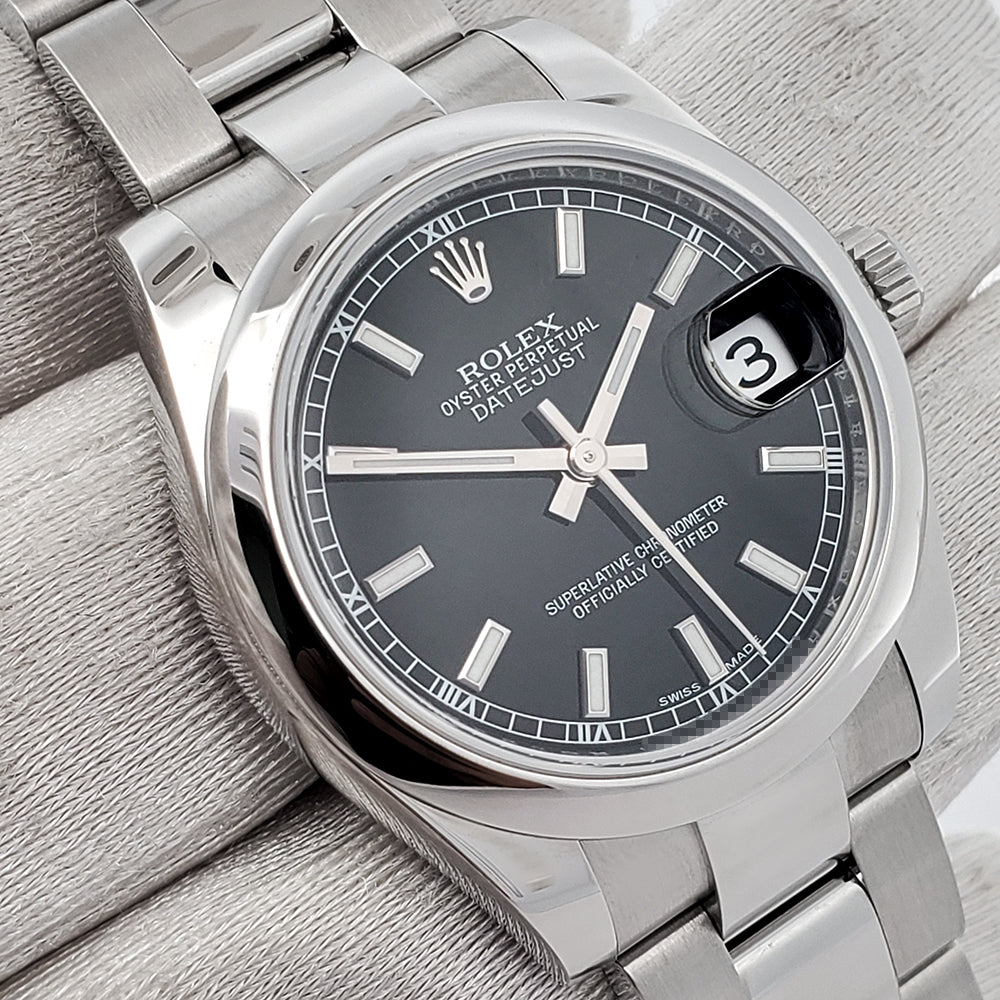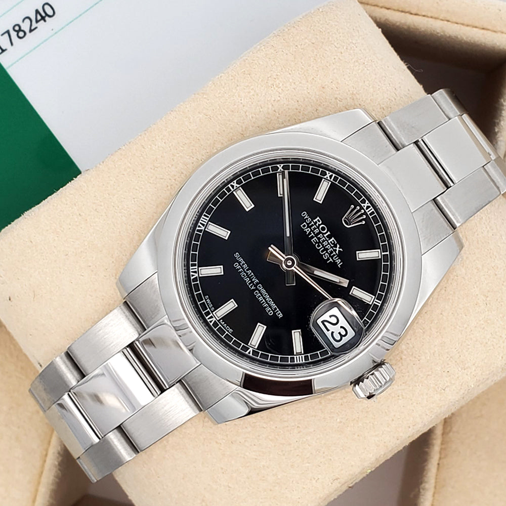 Rolex Datejust 31mm Black Index Steel Oyster Watch 178240 Box Papers
