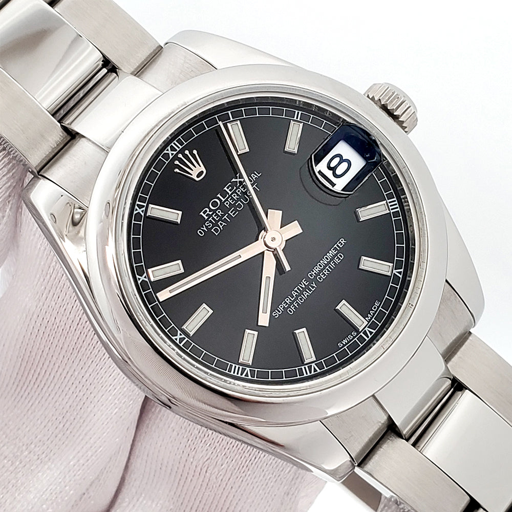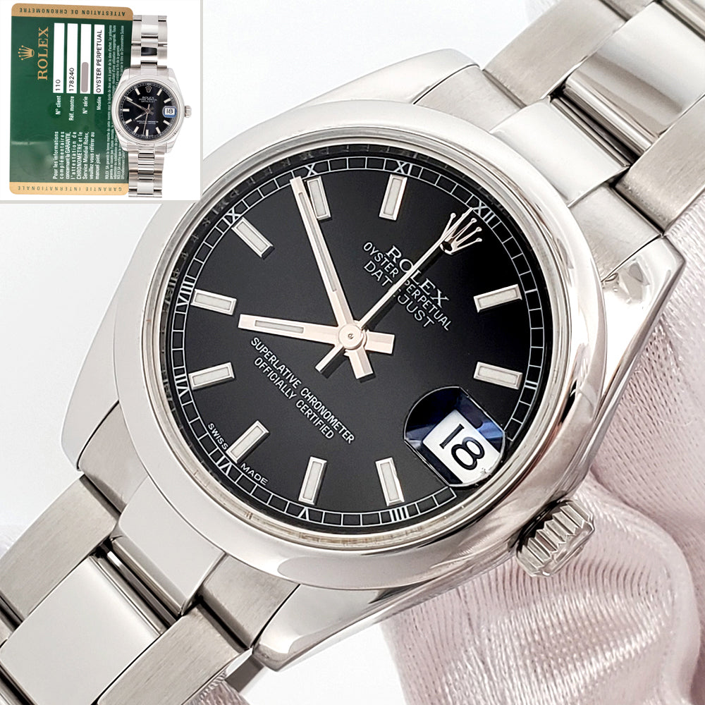 Rolex Datejust 31mm Black Index Steel Oyster Watch 178240 Papers