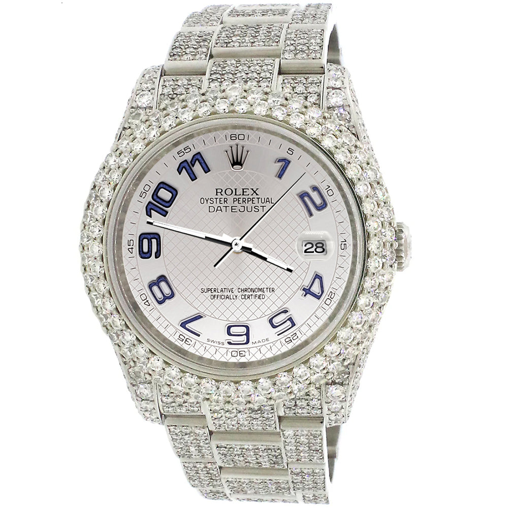 Rolex Datejust 36mm Pave 16.9CT Diamond Bezel/Case/Bracelet/Silver Decorated Blue Arabic Dial Watch, Ref 116200.