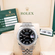 Timeless and sleek — Rolex Datejust 36mm with black index dial, steel Jubilee bracelet, and original Box Papers.