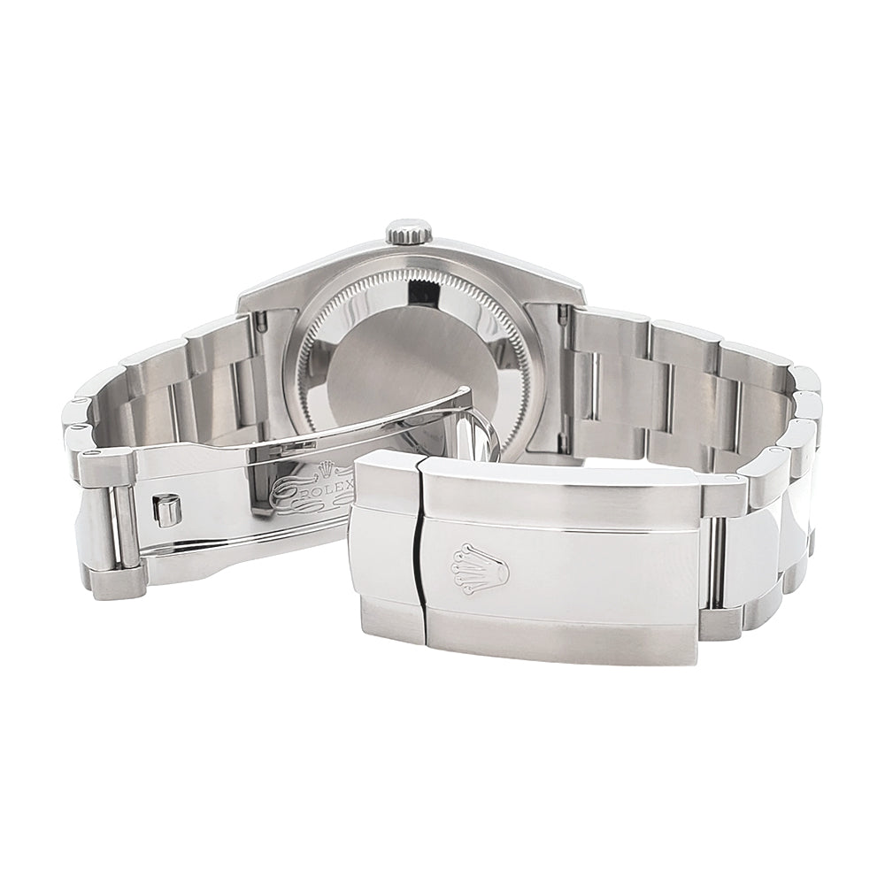 Refined and bold — Rolex Datejust 36mm with black Roman dial, steel Oyster bracelet, papers, and original tag included.
