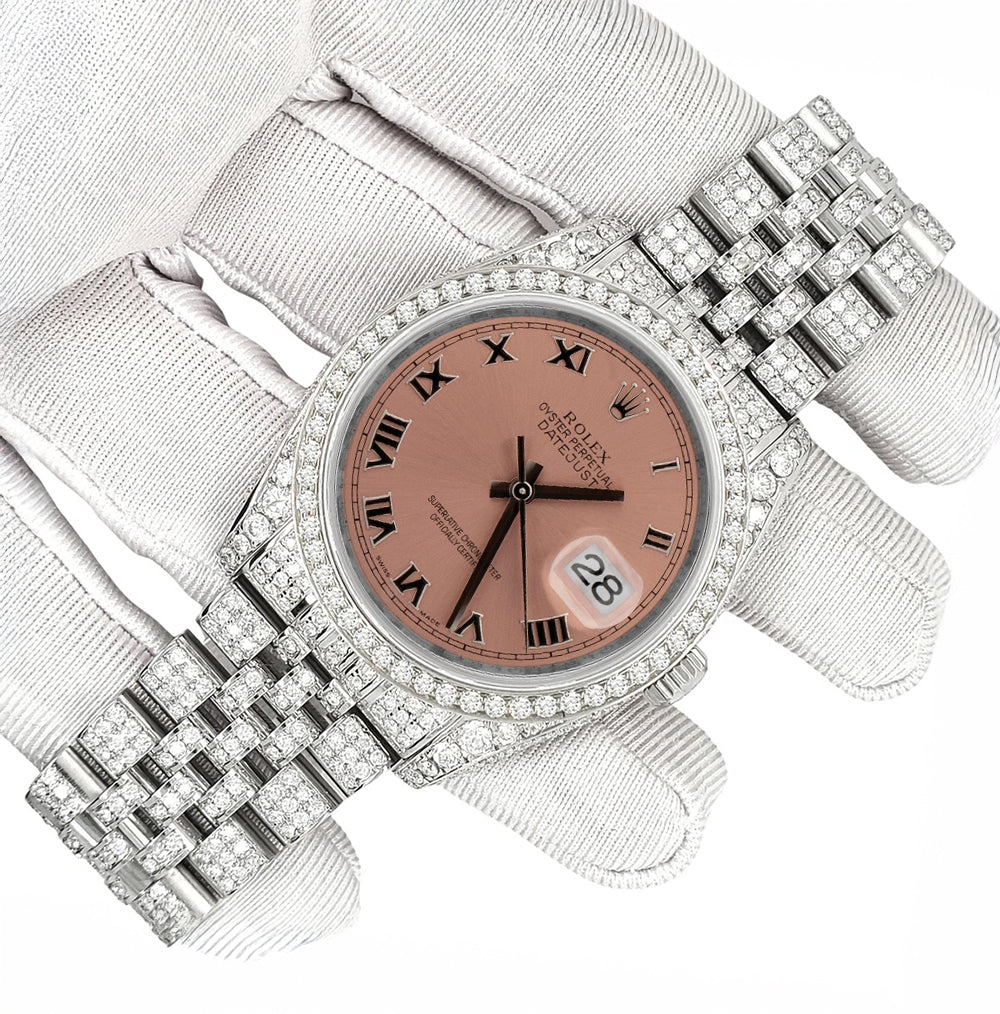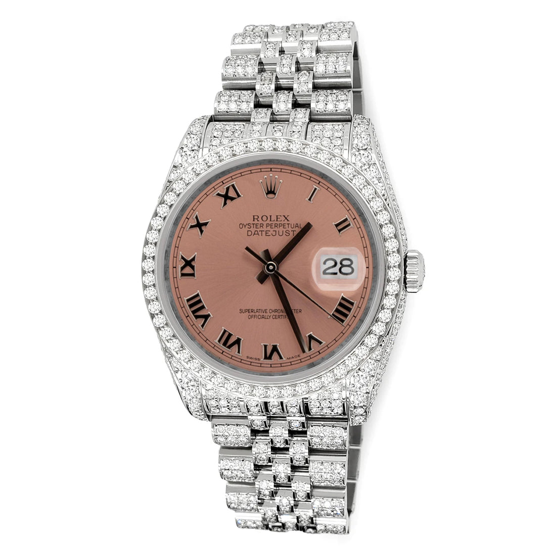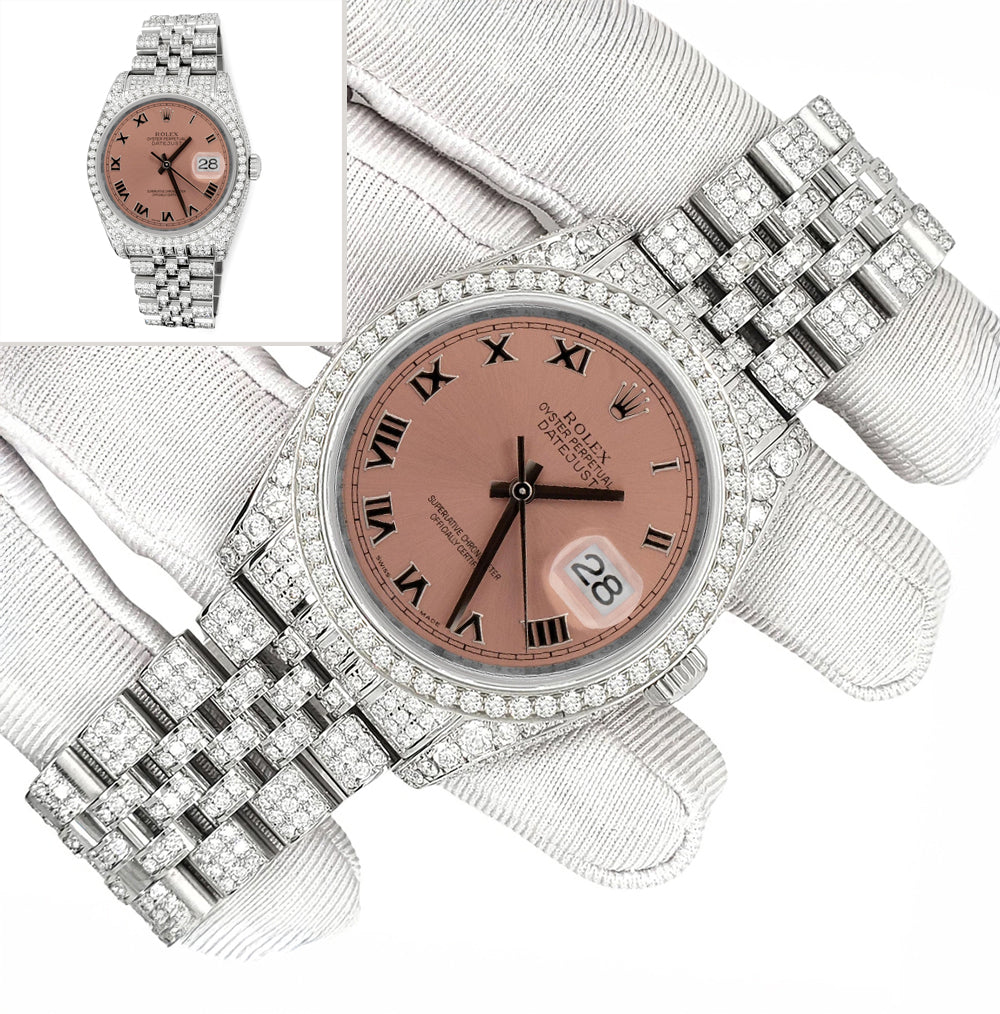 Rolex Datejust 36mm Pave 10.2ct Iced Diamond Salmon Roman Dial Jubilee Watch, Ref 116200.
