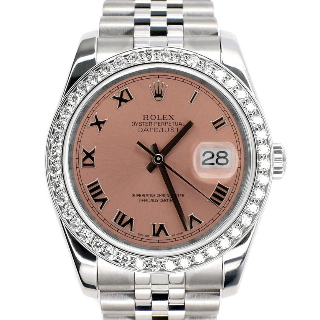 Rolex Datejust 36mm Salmon Roman Dial Steel Jubilee Watch with 1.85CT Custom Diamond Bezel 116200