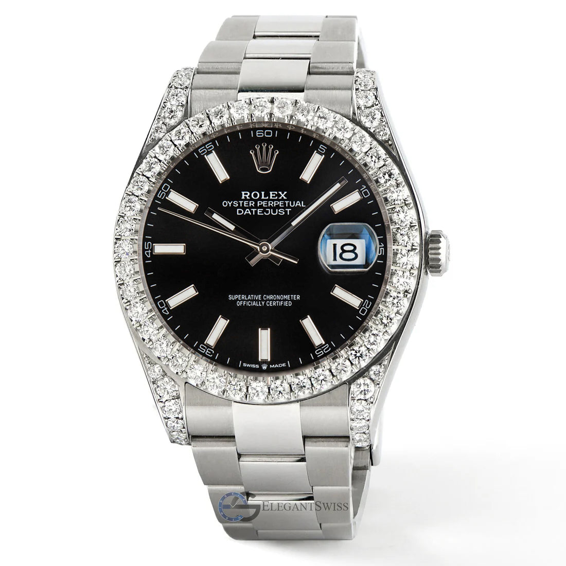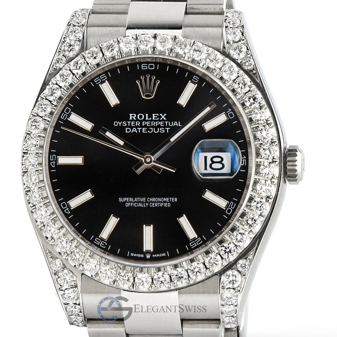 Rolex Datejust 41 126300 4.4CT Diamond Bezel/Lugs/Black Index Dial Steel Oyster Watch Box Papers