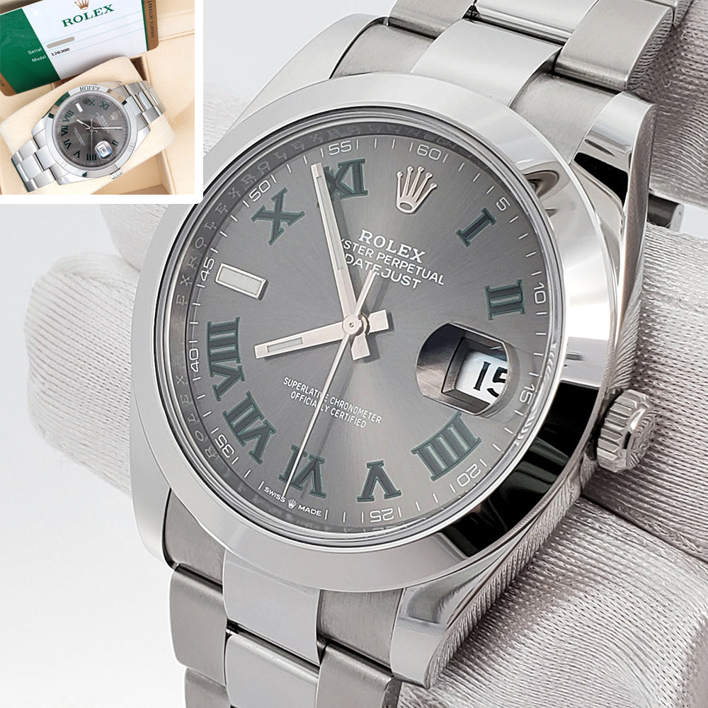 Rolex Datejust 41 126300 Wimbledon Grey Slate Roman Steel Oyster Watch Box Papers