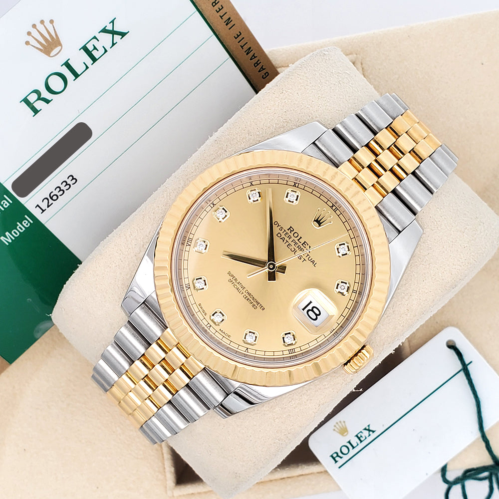 Rolex Datejust 41 126333 Factory Champagne Diamond 2-tone Yellow Gold/Steel Jubilee Watch Box/Papers/Tag