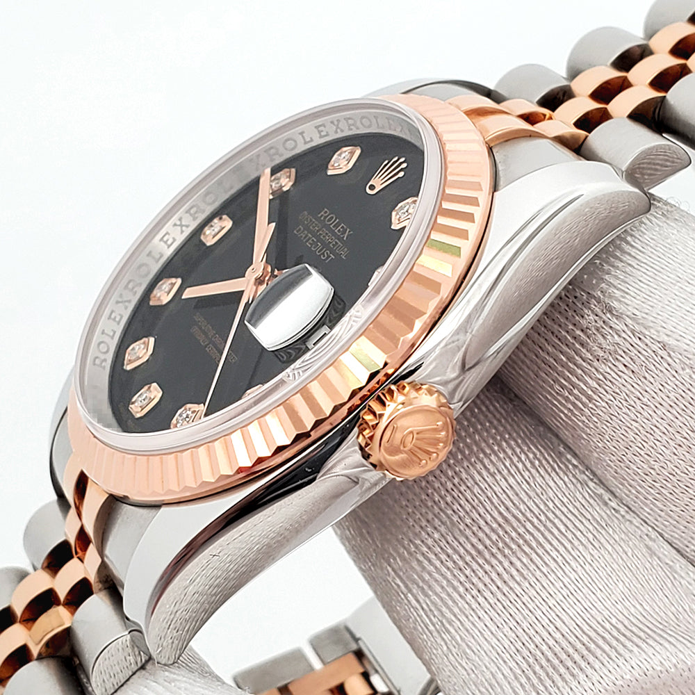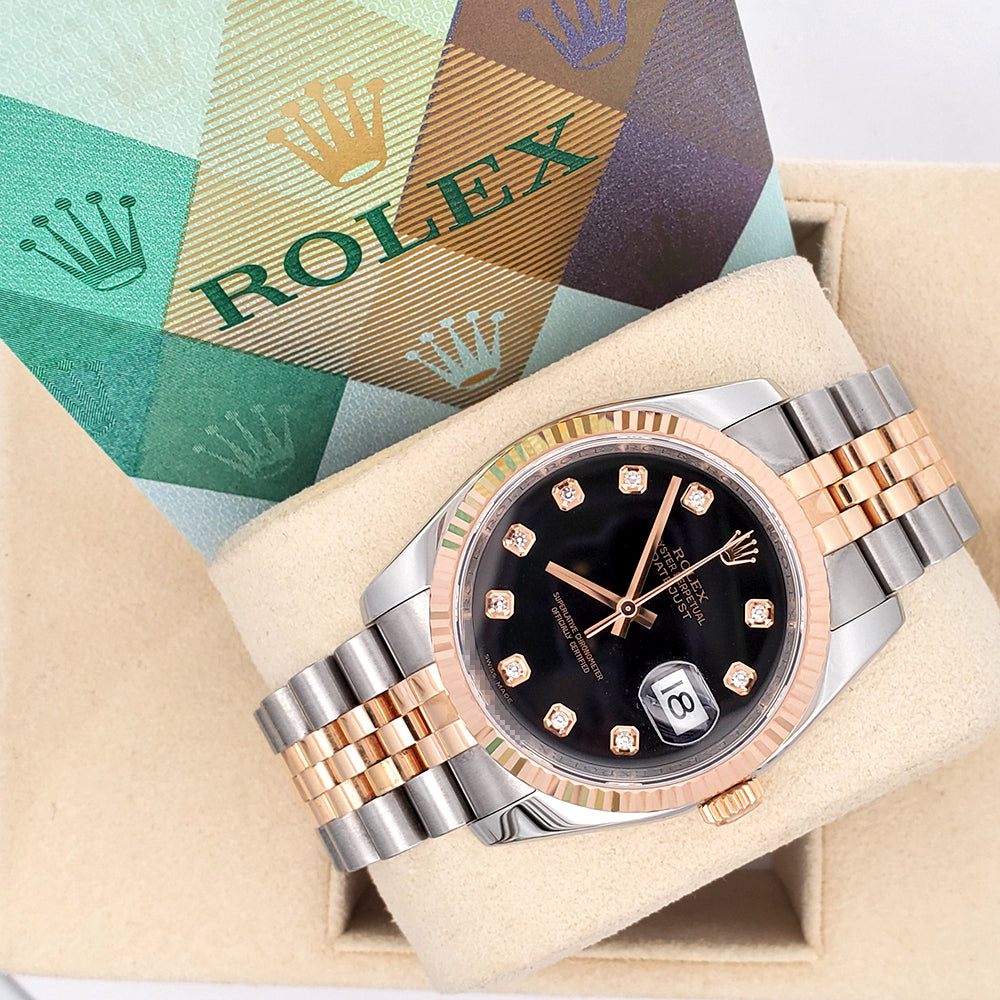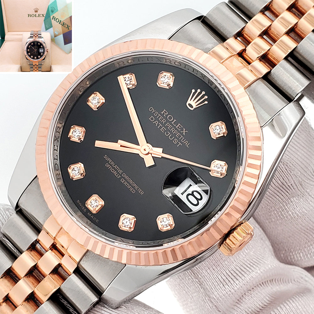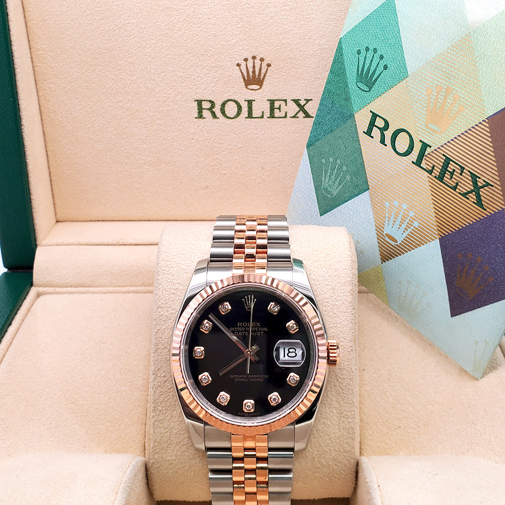 Rolex Datejust Factory Black Diamond Dial 2-Tone Rose Gold/Steel Jubilee 36mm Watch 116231 Box Papers
