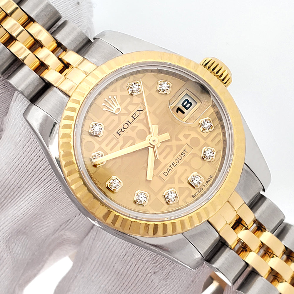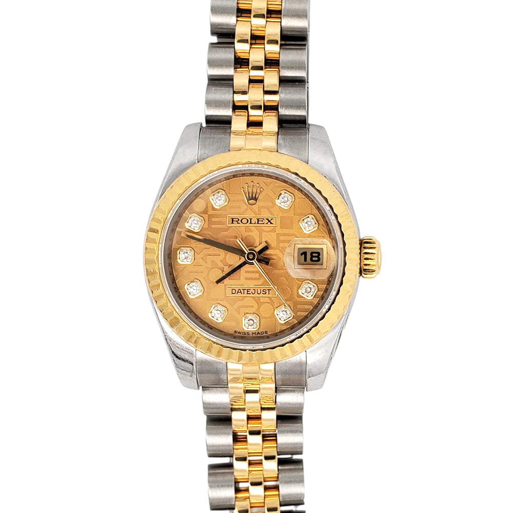 Rolex Datejust 26mm Factory Champagne Diamond Dial 2-tone Yellow/Gold Jubilee Watch, Ref 179173.