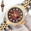 Radiant rarity Rolex Datejust 26mm 69173 with factory red vignette diamond dial in two-tone yellow gold and steel Jubilee bracelet. A striking and collectible statement of luxury.