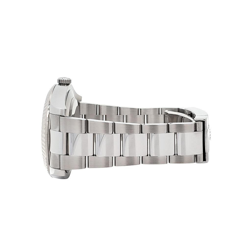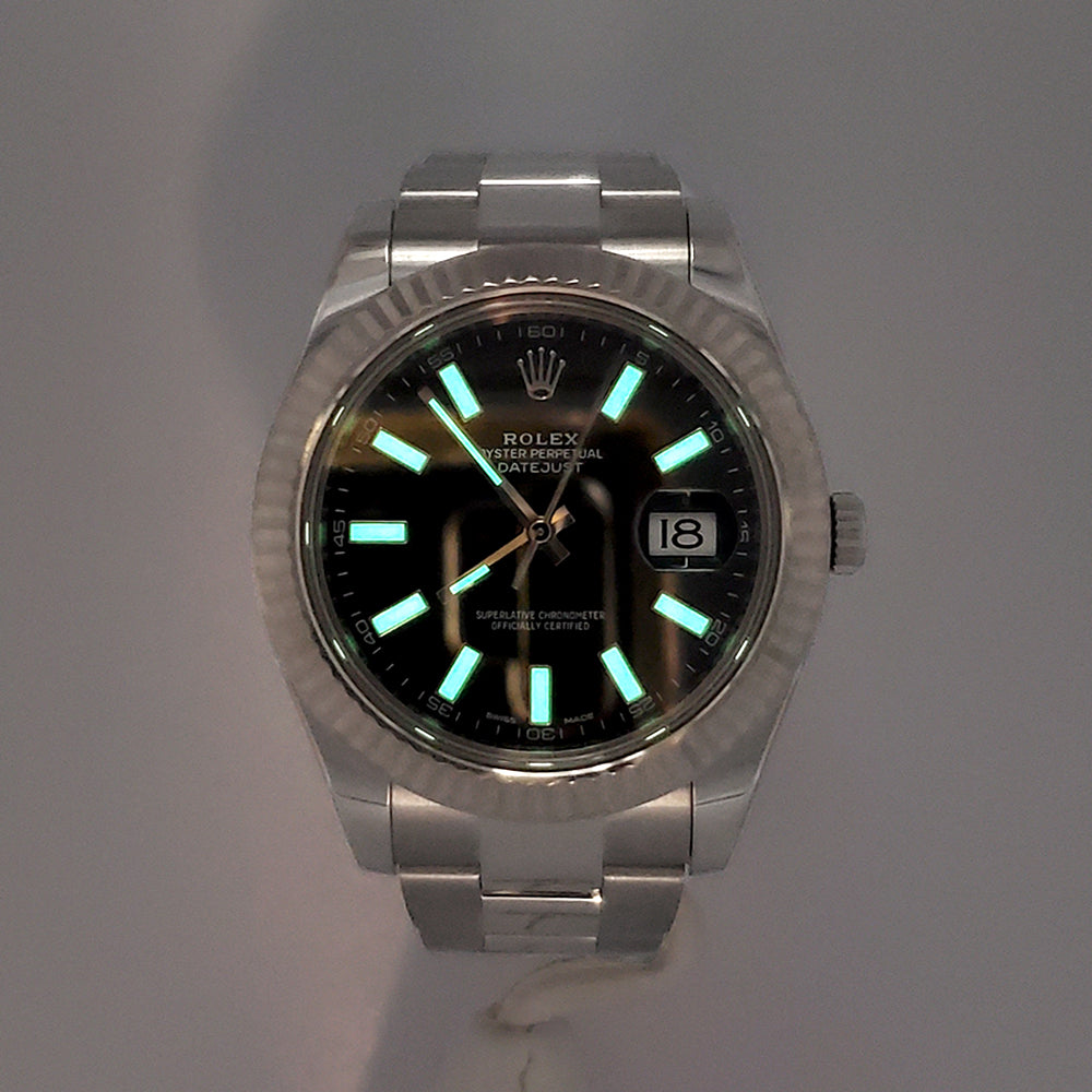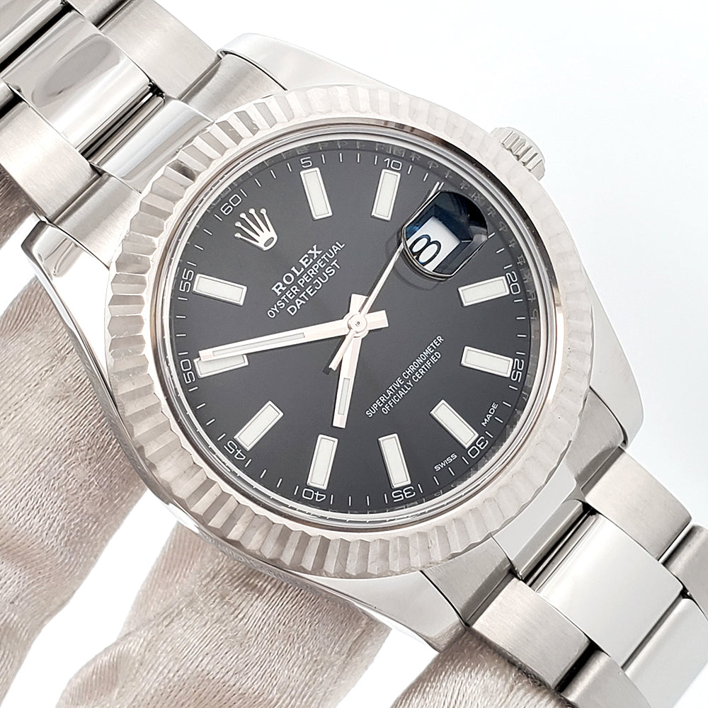 Rolex Datejust II Black Index Dial White Gold Fluted Bezel Steel 41mm Watch, Ref 116334.