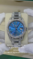 Rolex Datejust 41 8.3ct Diamond Bezel/Lugs/Bracelet/Blue Roman Dial Steel Watch 126300 Box Papers