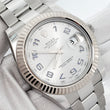Rolex Datejust II 41mm Rhodium Arabic Dial White Gold Fluted Bezel Steel Watch 116334 Box Papers