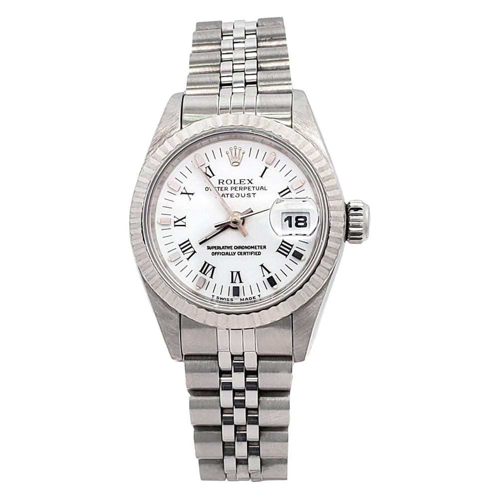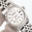 Rolex Datejust Ladies White Roman Dial Gold Fluted Bezel 26mm Steel Jubilee Watch, Ref 69174.