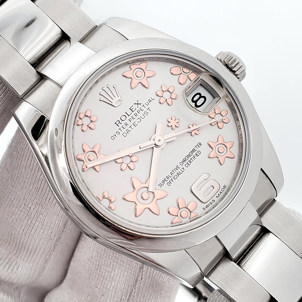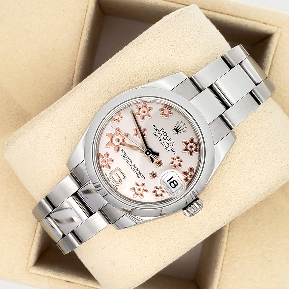 Rolex Datejust Midsize 31mm Rose Floral Dial Steel Oyster Watch, Ref 178240.