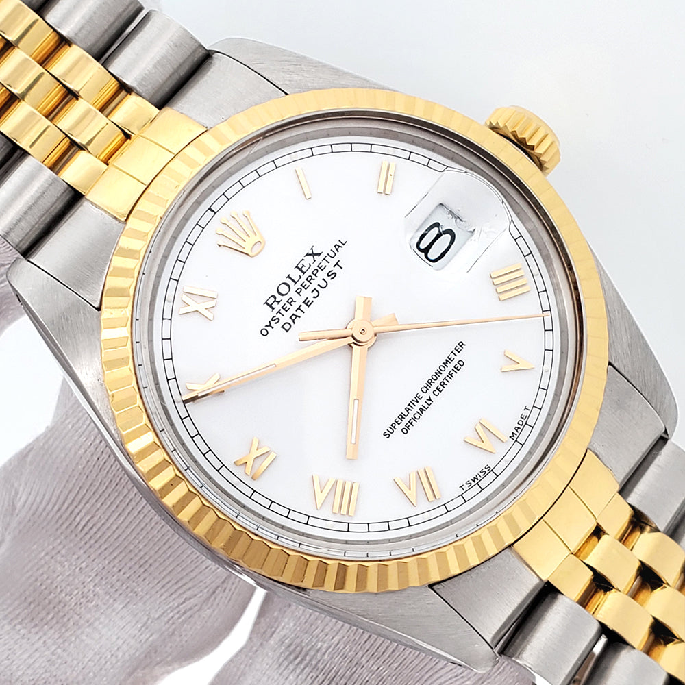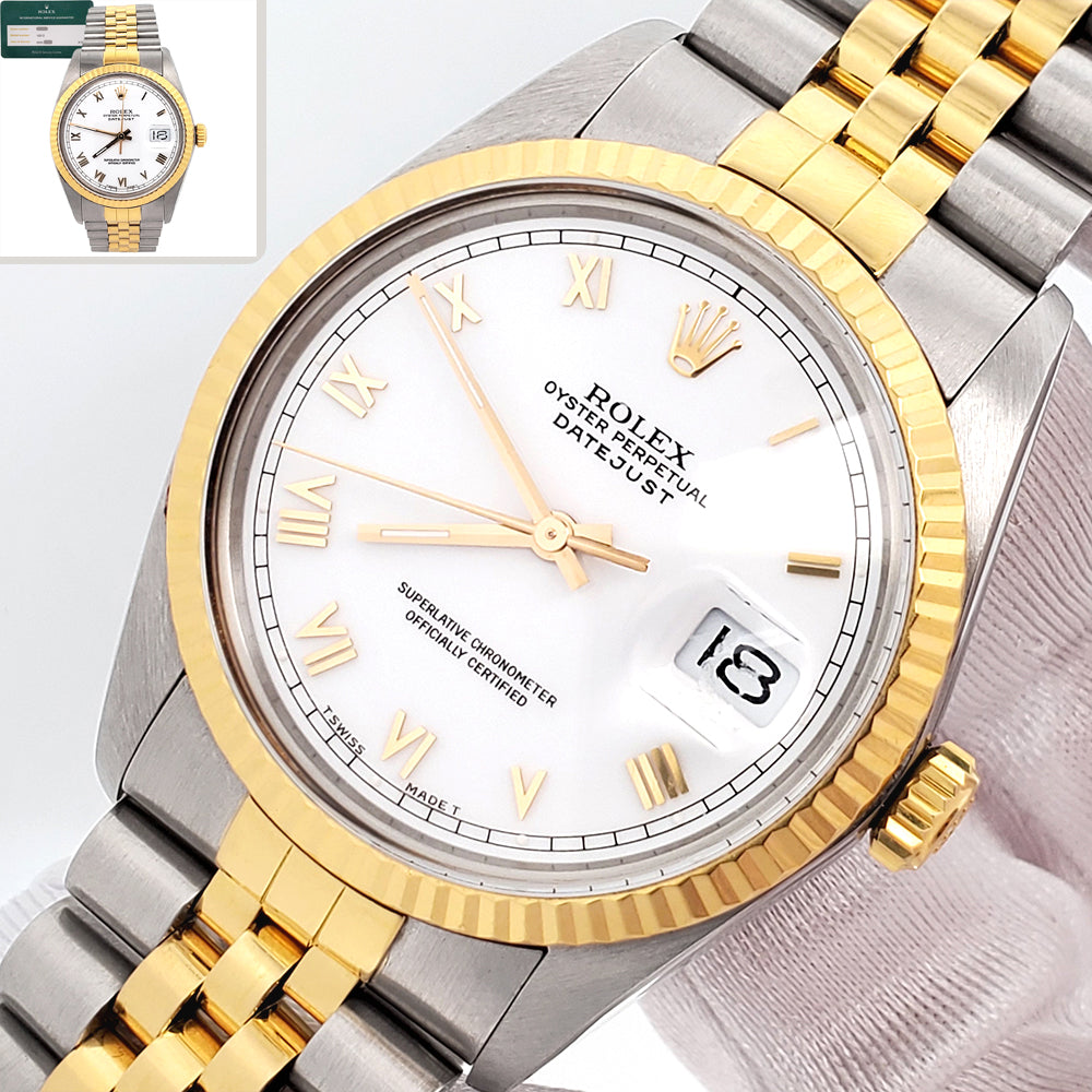 Rolex Datejust White Roman 2-Tone 36mm Jubilee Watch, Ref 16013.