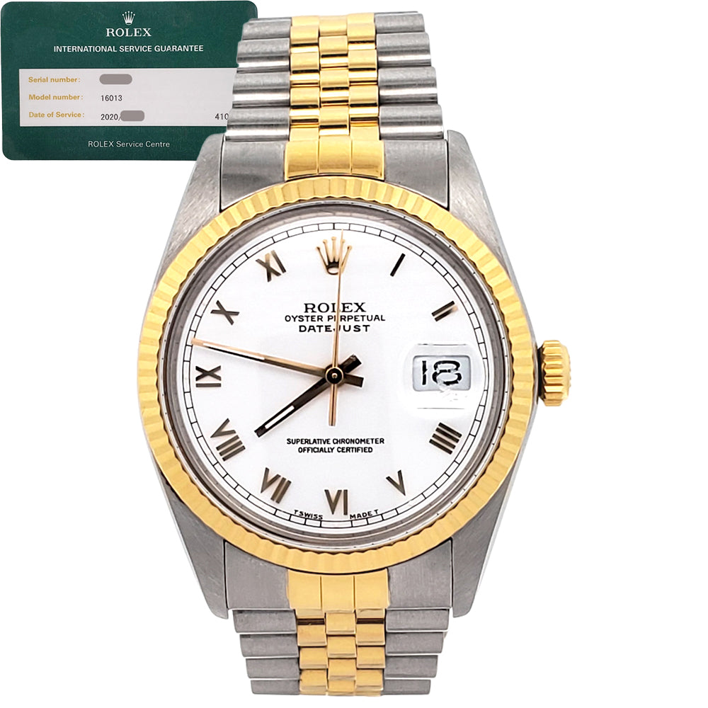 Rolex Datejust White Roman 2-Tone 36mm Jubilee Watch 16013 Service Papers