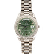 Rolex Day-Date 40 President  Olive Green Roman Dial White Gold Watch, Ref 228239.