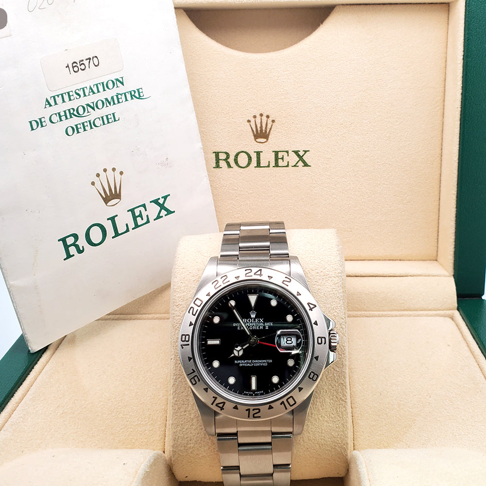Rolex Explorer II 40mm Black Dial Steel Oyster Watch 16570 Box Papers