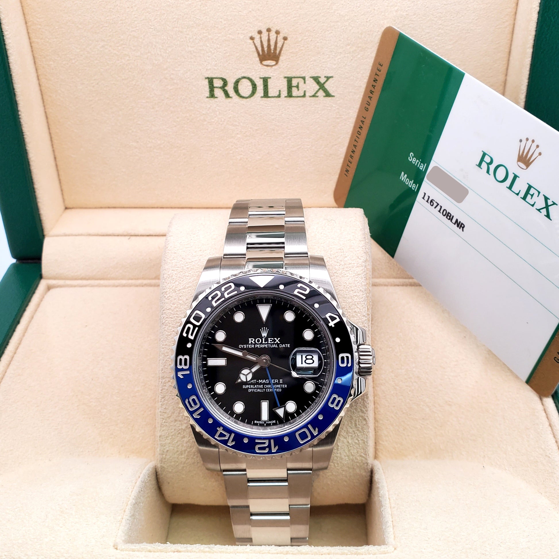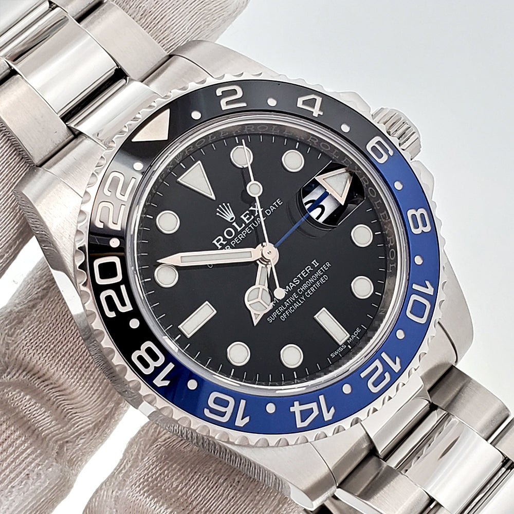 Rolex GMT-Master II "Batman" Blue/Black Ceramic Bezel Steel Oyster 40mm Watch, Ref 116710BLNR.