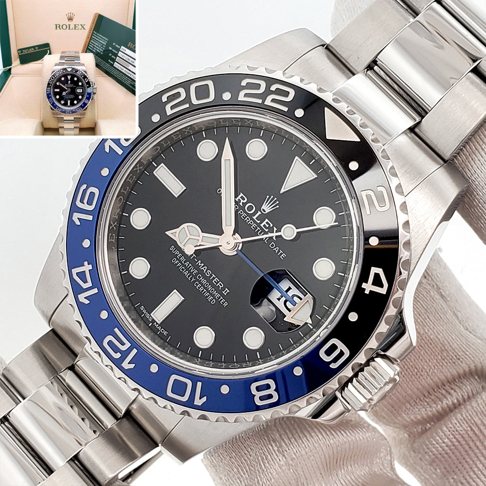 Rolex GMT-Master II "Batman" Blue/Black Ceramic Bezel Steel Oyster 40mm Watch, Ref 116710BLNR.