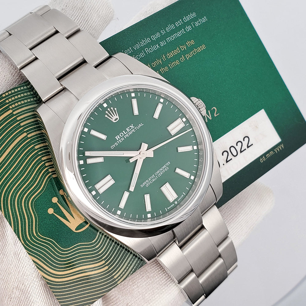 Rolex Oyster Perpetual 41mm Green Index Dial Stainless Steel Watch, Ref 124300. Dated 2022.