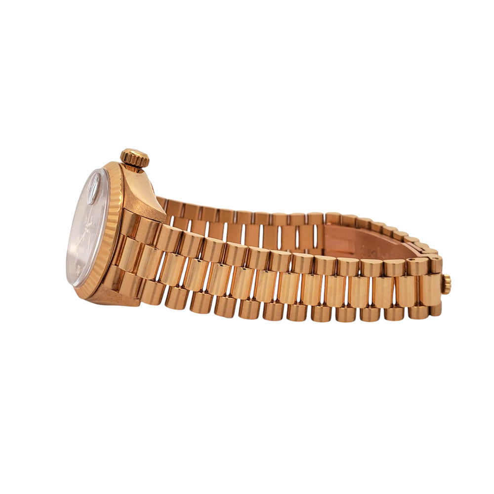The Rolex President Datejust 69178 combines elegance and luxury with its 26mm yellow gold case and stunning champagne diamond dial. Known for its signature "President" bracelet, it’s a classic timepiece that exudes sophistication and timeless style.