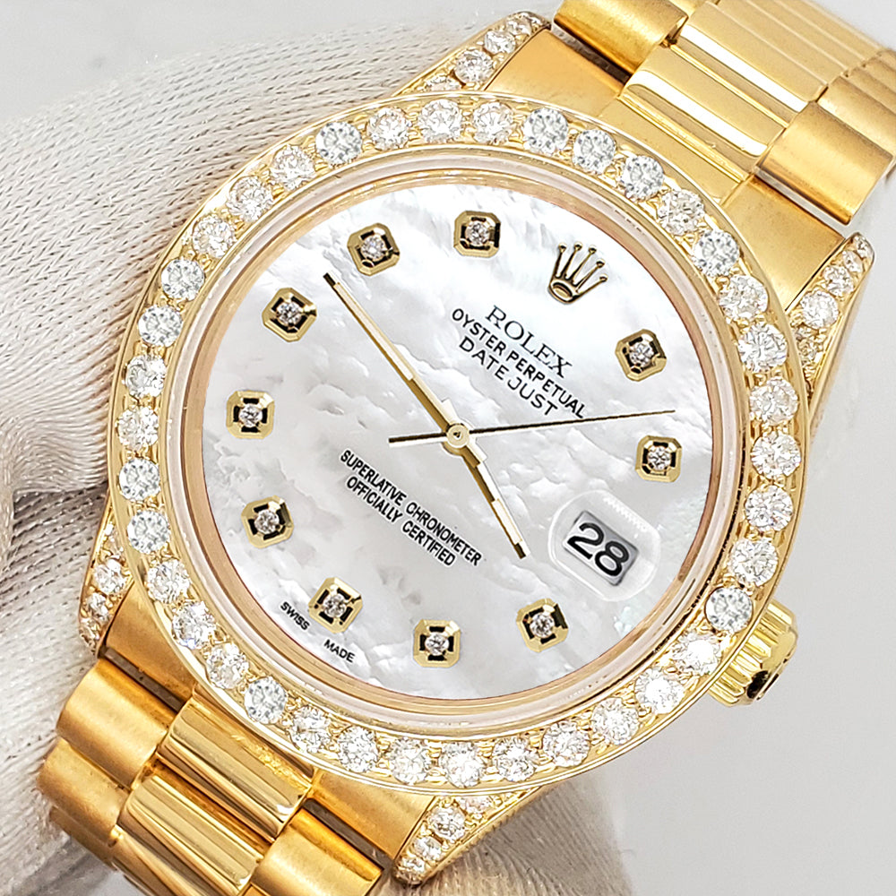 Rolex President Datejust 31mm 2.3CT Diamond Bezel/Lugs/White MOP Dial Yellow Gold Watch