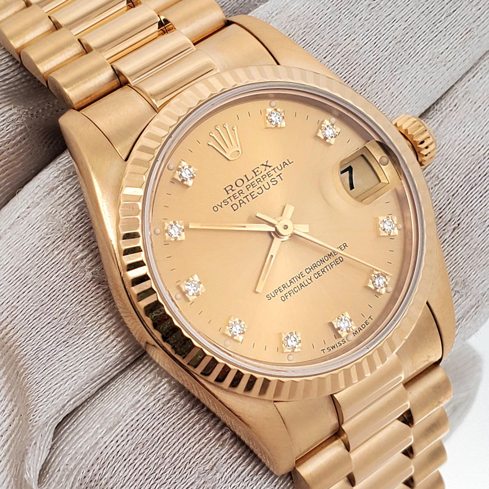 Rolex President Datejust 31mm Factory Champagne Diamond Yellow Gold Watch 68278
