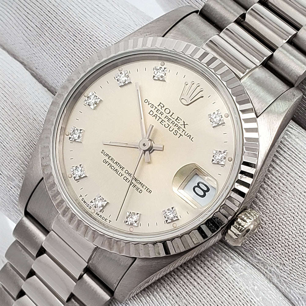 Rolex President Datejust 31mm Factory Diamond Dial White Gold Watch, Ref 68279.