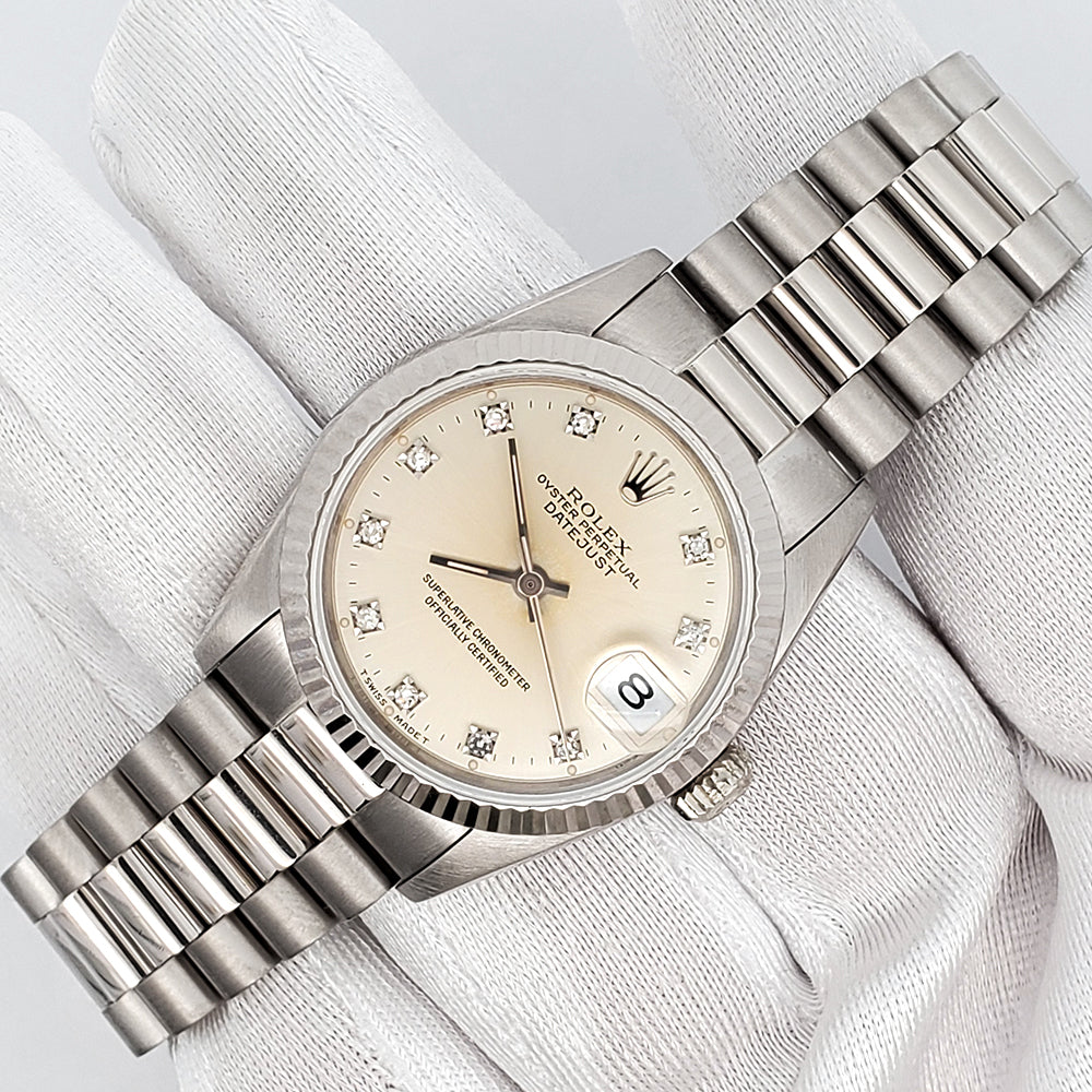 Rolex President Datejust 31mm Factory Diamond Dial White Gold Watch 68279
