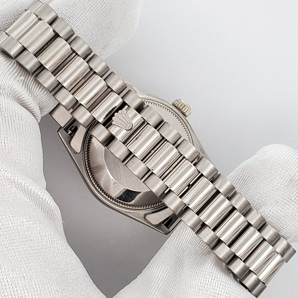 The Rolex President Datejust 31mm 68279 features an exquisite factory diamond dial and is crafted in luxurious white gold. Known for its timeless elegance and the iconic President bracelet, this watch is a perfect blend of sophistication and craftsmanship.