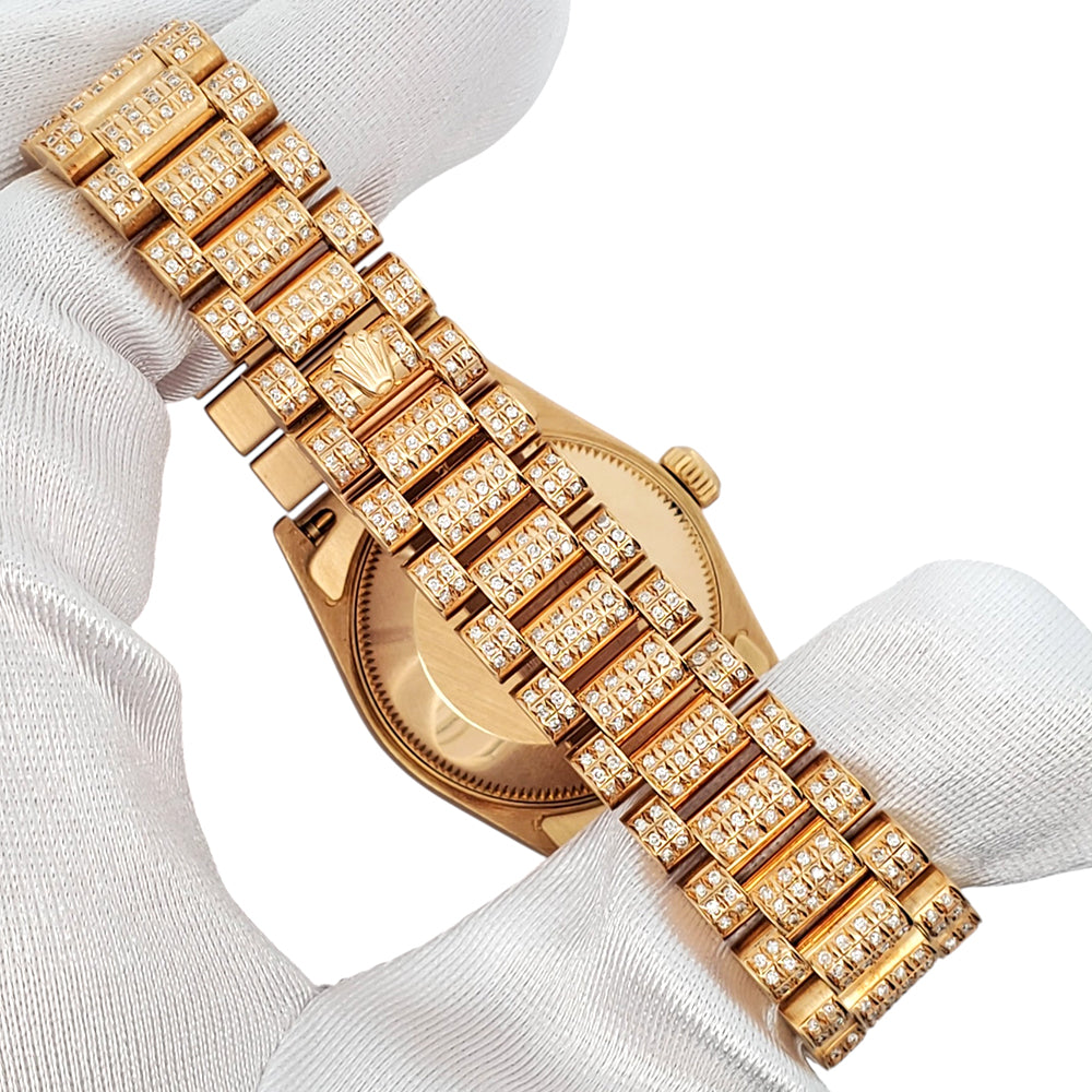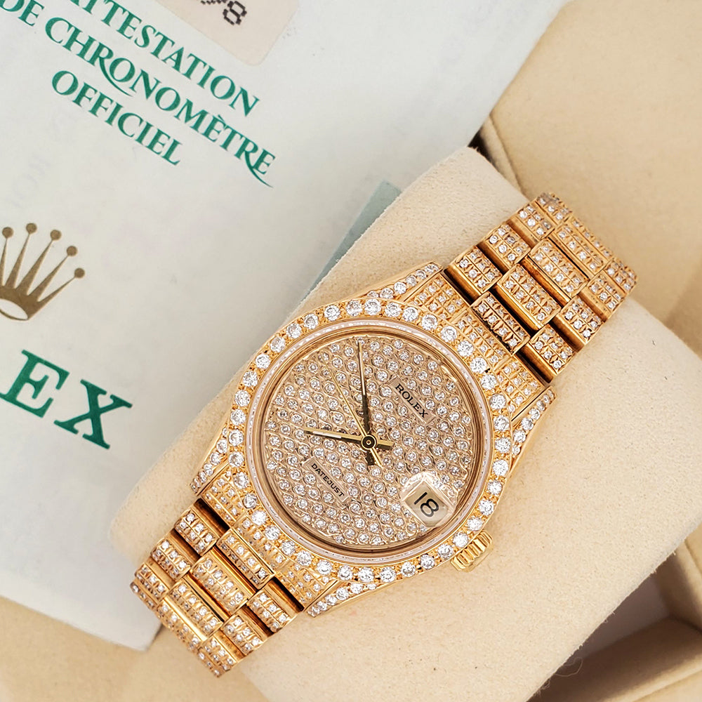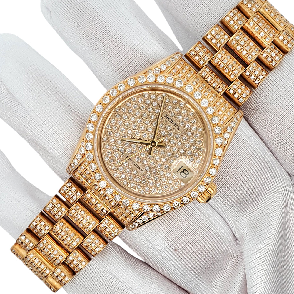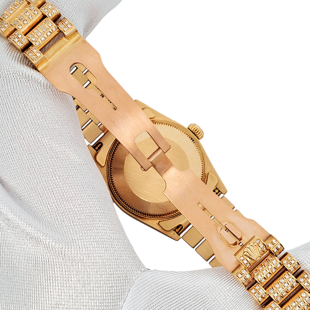 Rolex President Datejust Midsize 31mm Pave Diamond Dial/Bezel/Lugs/Bracelet Yellow Gold Ladies Watch, Ref #68278. Dated 1988.