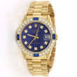 Rolex President Datejust Midsize 31MM Yellow Gold Watch w/Blue Diamond Dial & Bezel 68278
