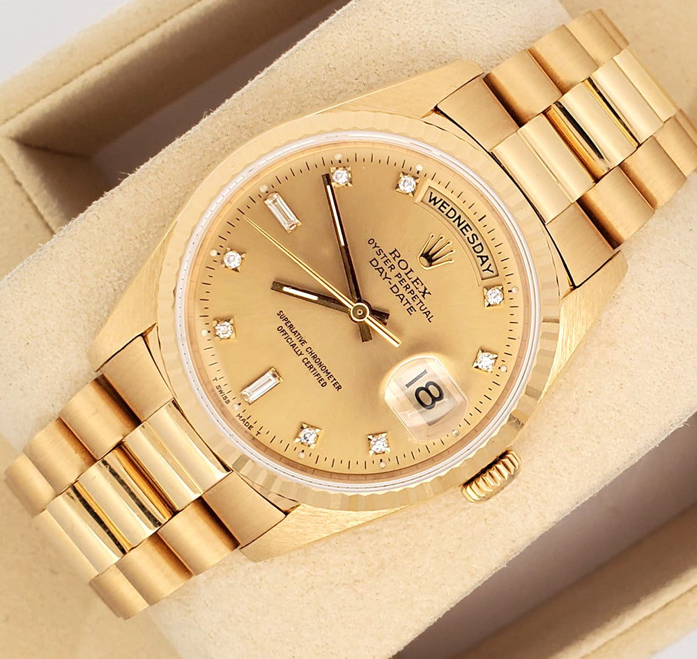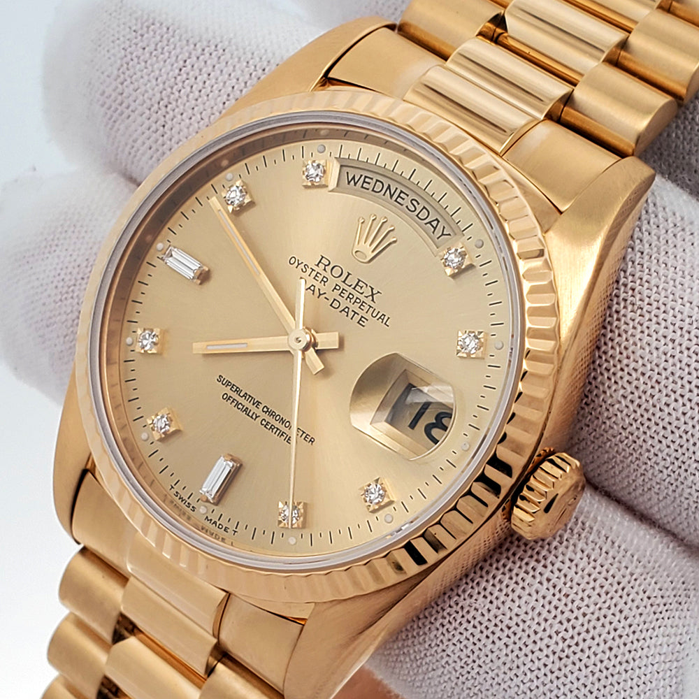 Rolex President Day-Date 36mm Factory Diamond Dial Double-Quick Yellow Gold Watch 18238