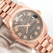 Rolex President Day-Date Chocolate Wave Arabic Dial Rose Gold 36mm Watch, Ref 118205.
