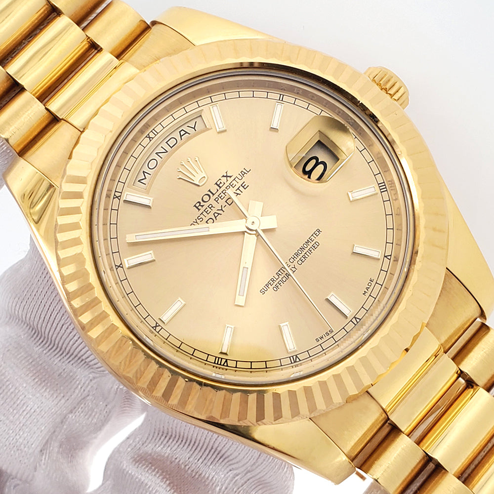 Rolex President Day-Date II 41mm Champagne Index Yellow Gold Watch, Ref 218238.
