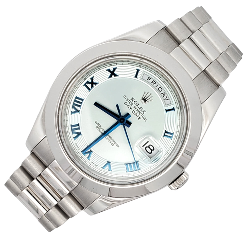 Rolex President Day-Date II 41mm Glacier Ice Blue Roman Concentric Dial Platinum 218206 Box Papers