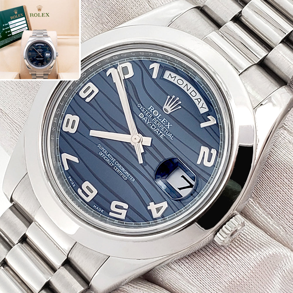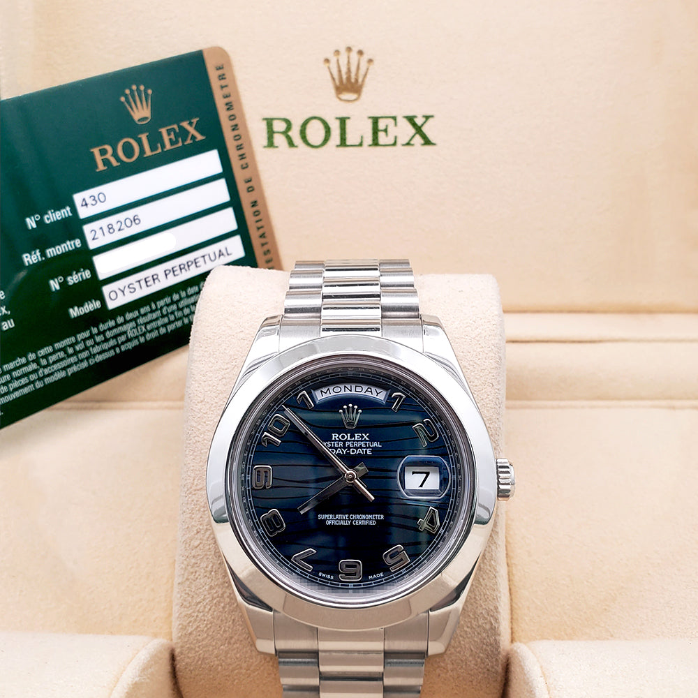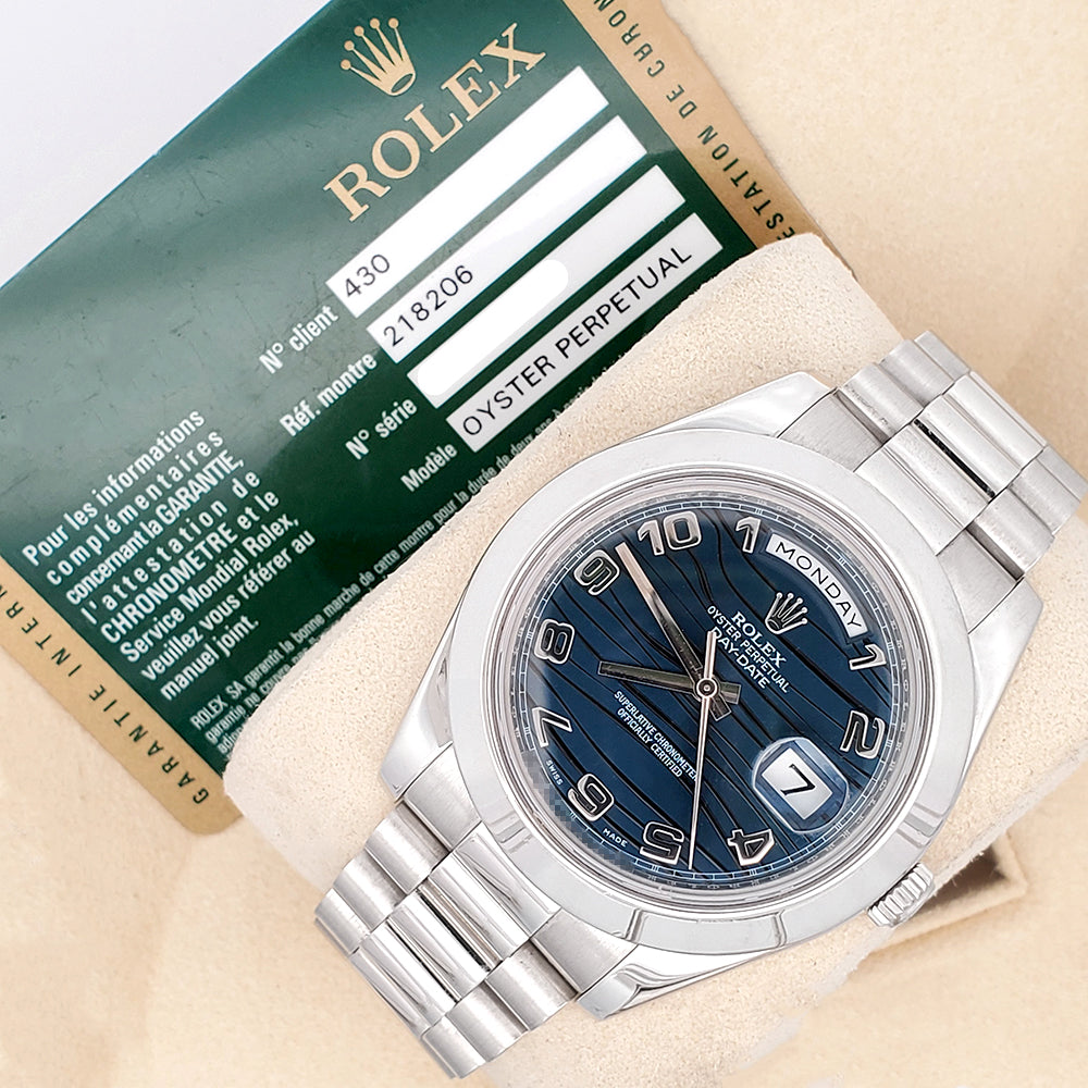 Rolex Day-Date II 41mm Platinum Blue Wave Arabic Dial Watch, Ref 218206