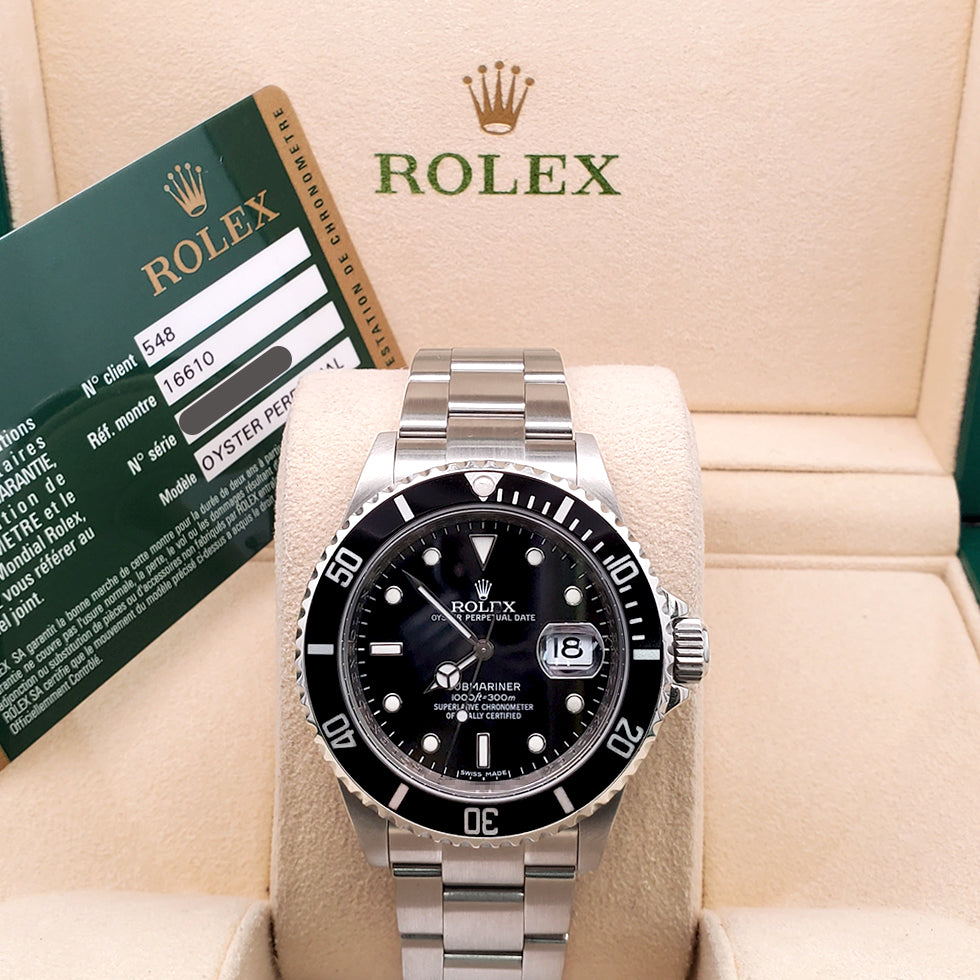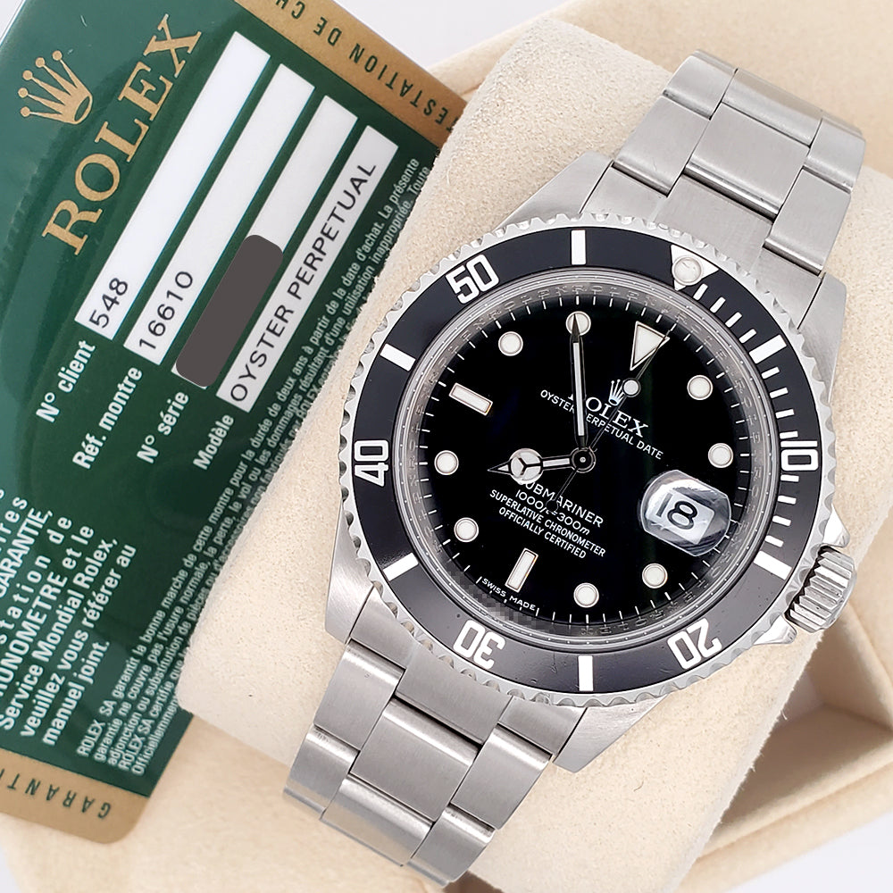 Rolex Submariner Date 16610 40mm Engraved Rehaut Steel Watch Box Papers