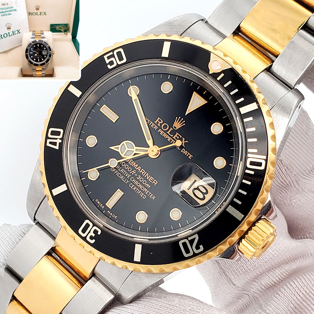 Rolex Submariner Date 16613 Yellow Gold/Steel Black Dial 40mm Watch Box/Papers/Tag