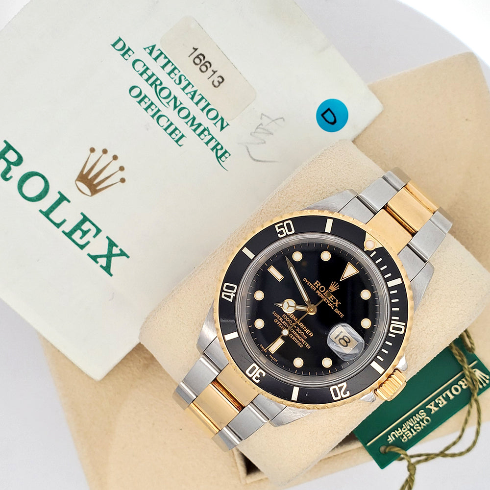 Rolex Submariner Date  Yellow Gold/Steel Black Dial 40mm Watch, Ref 16613.