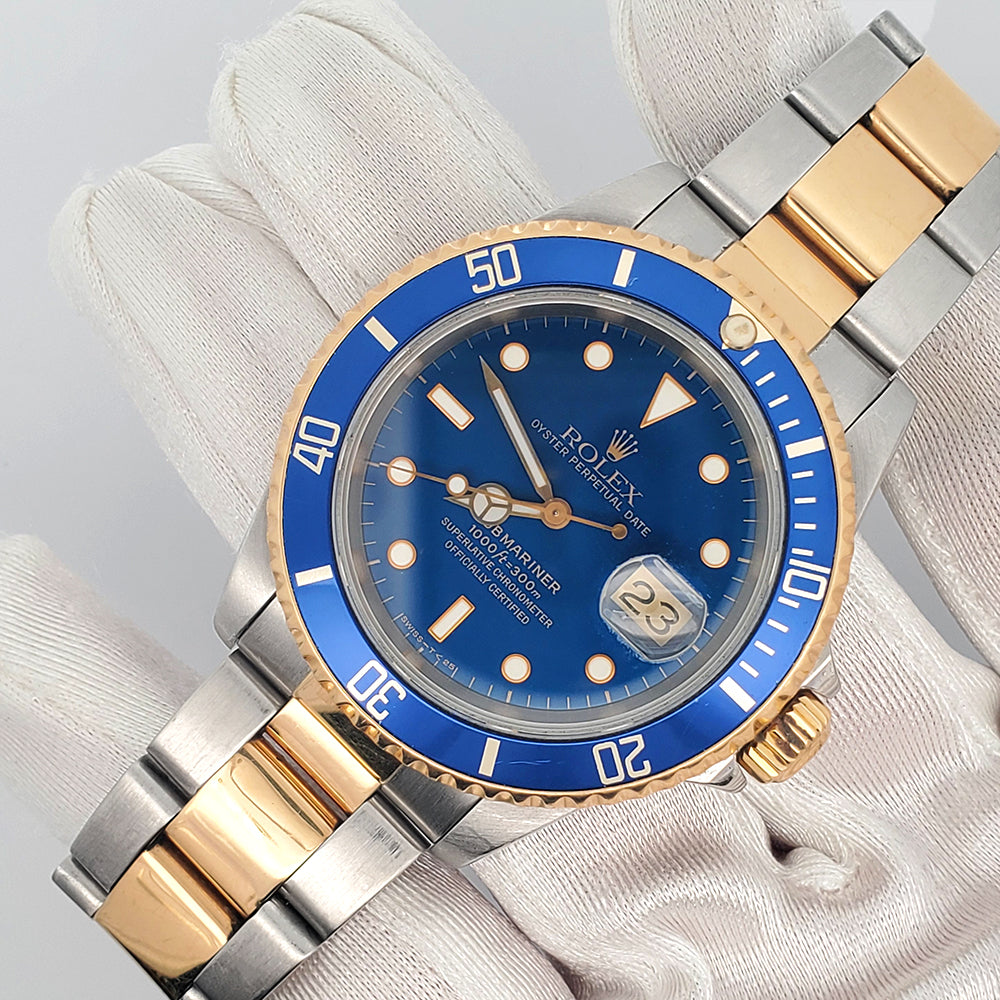 Rolex Submariner Date 40mm Blue Dial/Bezel 2-Tone Yellow Gold/Steel Watch 16613