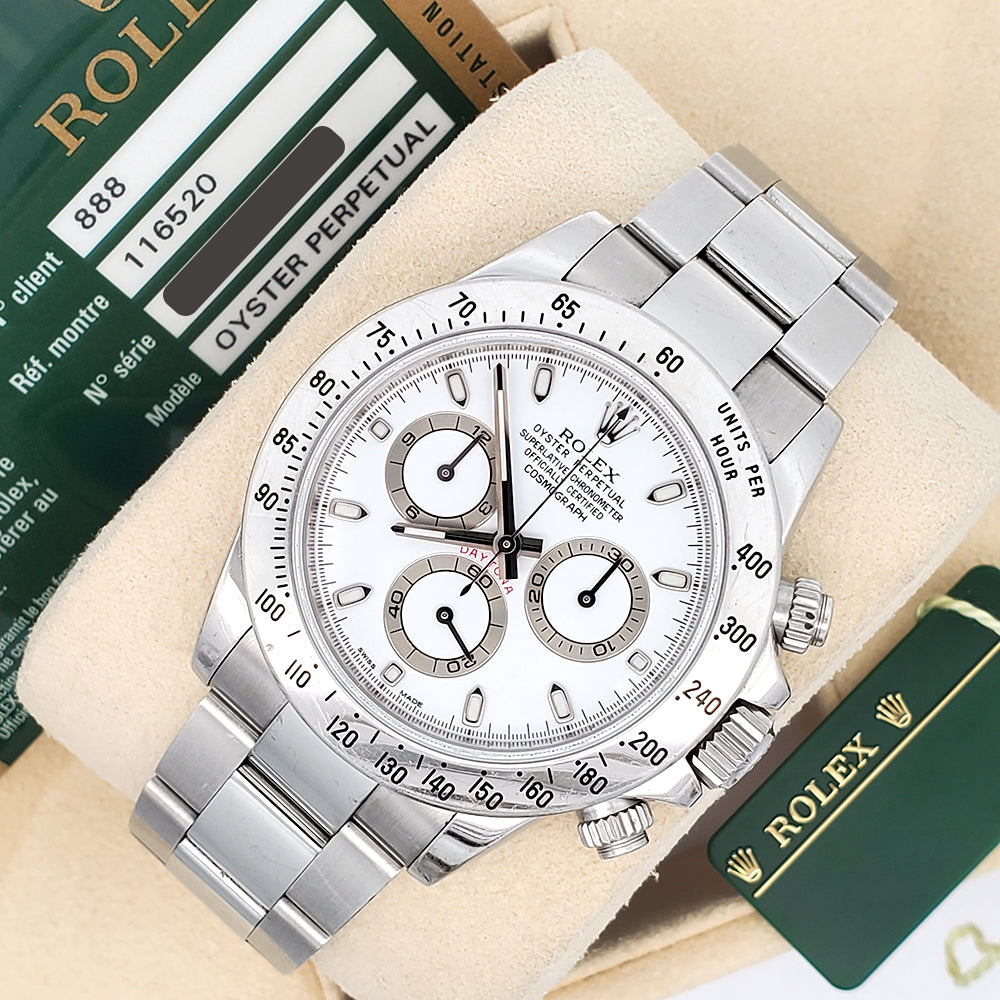 Unpolished Rolex Cosmograph Daytona 40mm 116520 'APH' White Dial Steel Watch Box/Papers/Tag