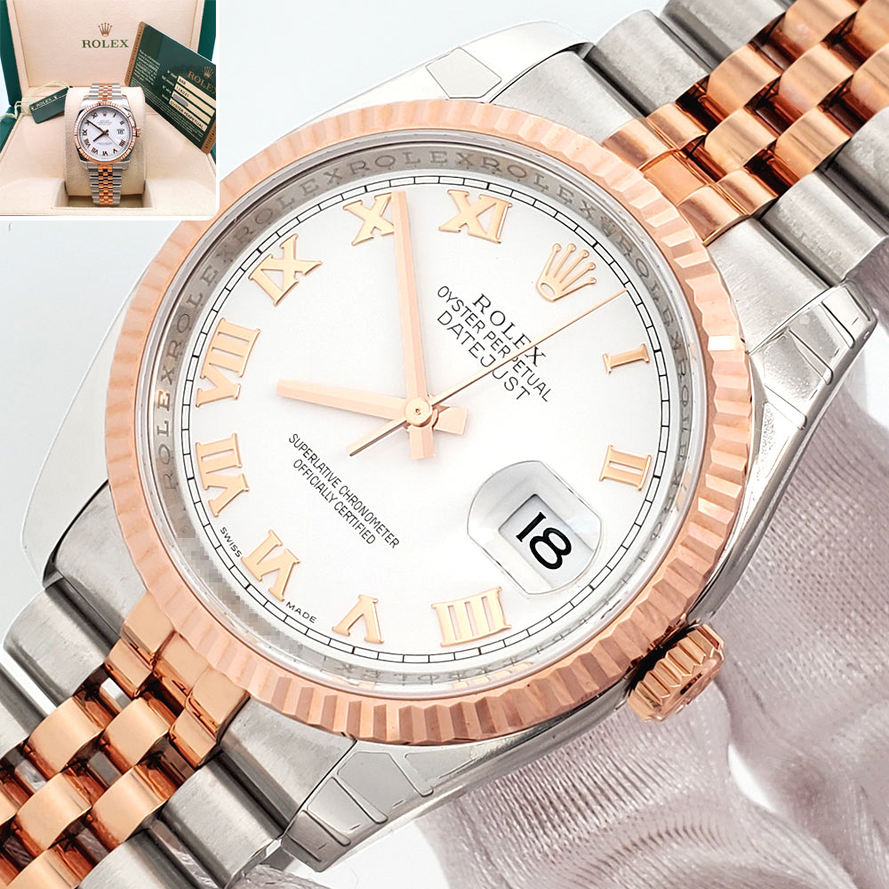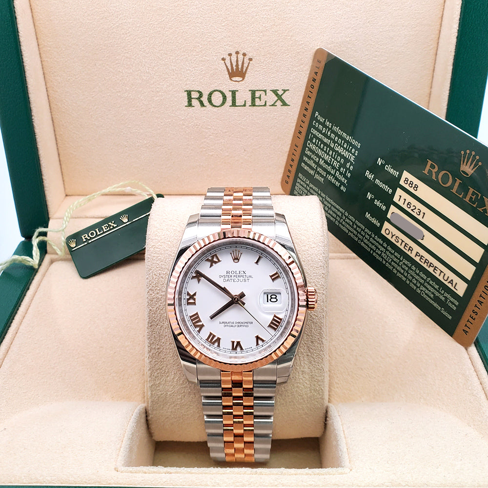 Unworn 2015 Rolex Datejust White Roman Dial Rose Gold/Steel Jubilee 36mm Watch 116231 Box/Papers/Tag