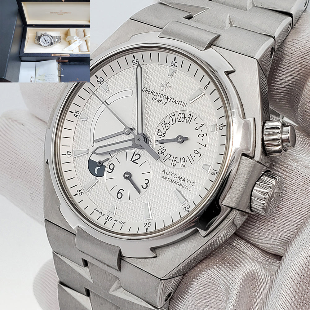 Vacheron Constantin Overseas Dual Time 42mm Chronograph Steel Watch 47450 Box Papers