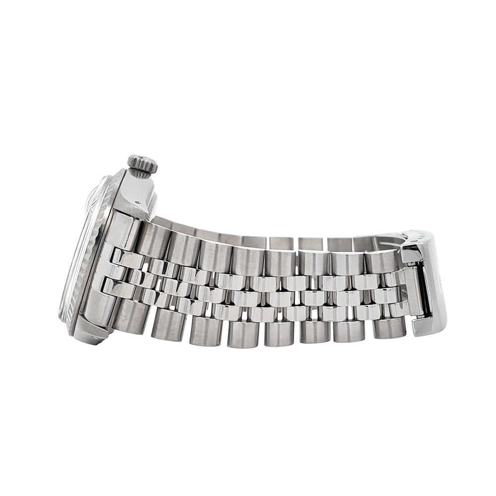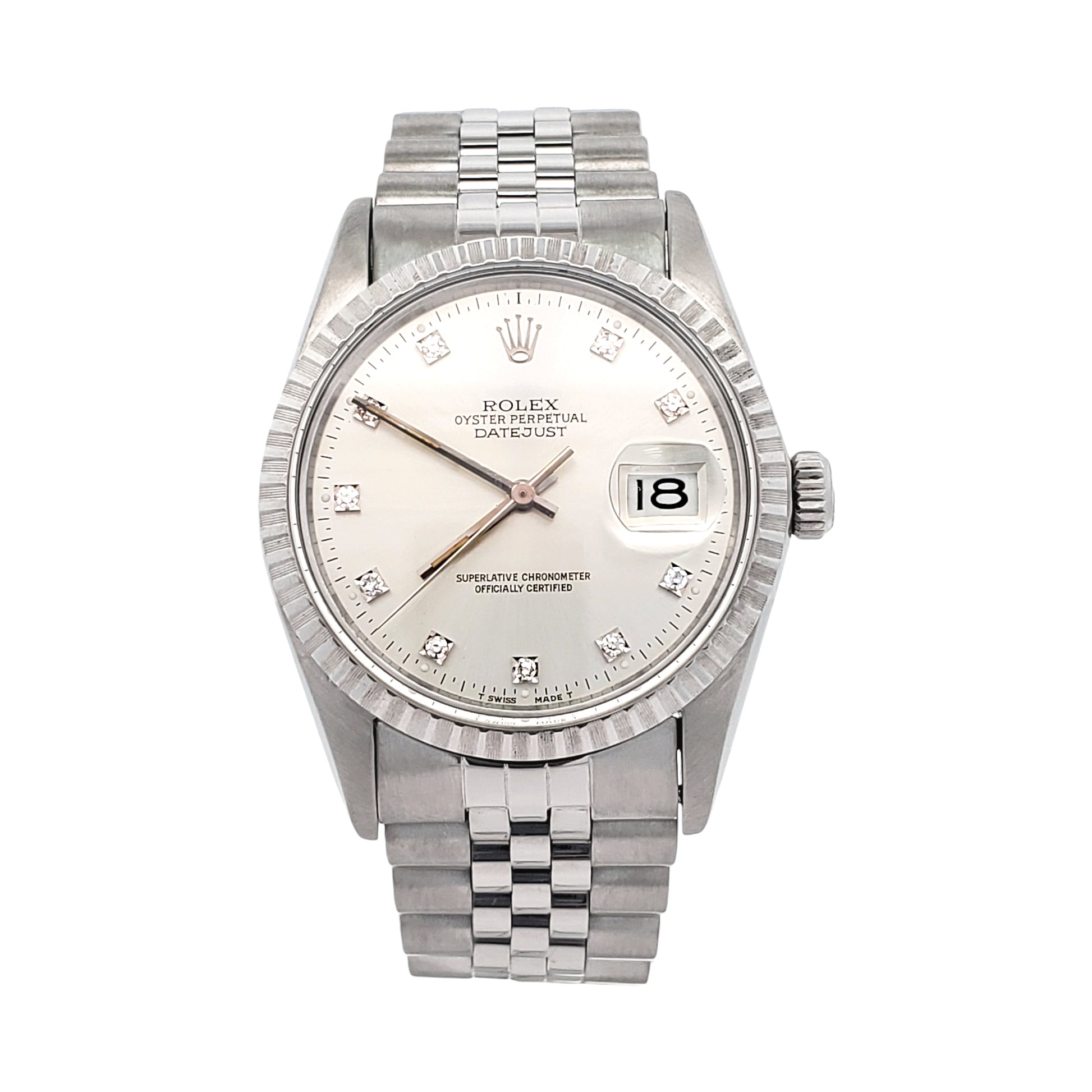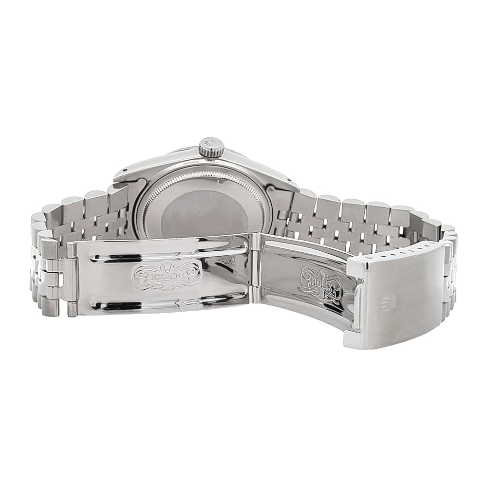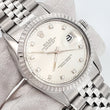 Vintage Rolex Datejust Factory Silver Diamond Dial 36mm Steel Jubilee Watch, Ref 16030.